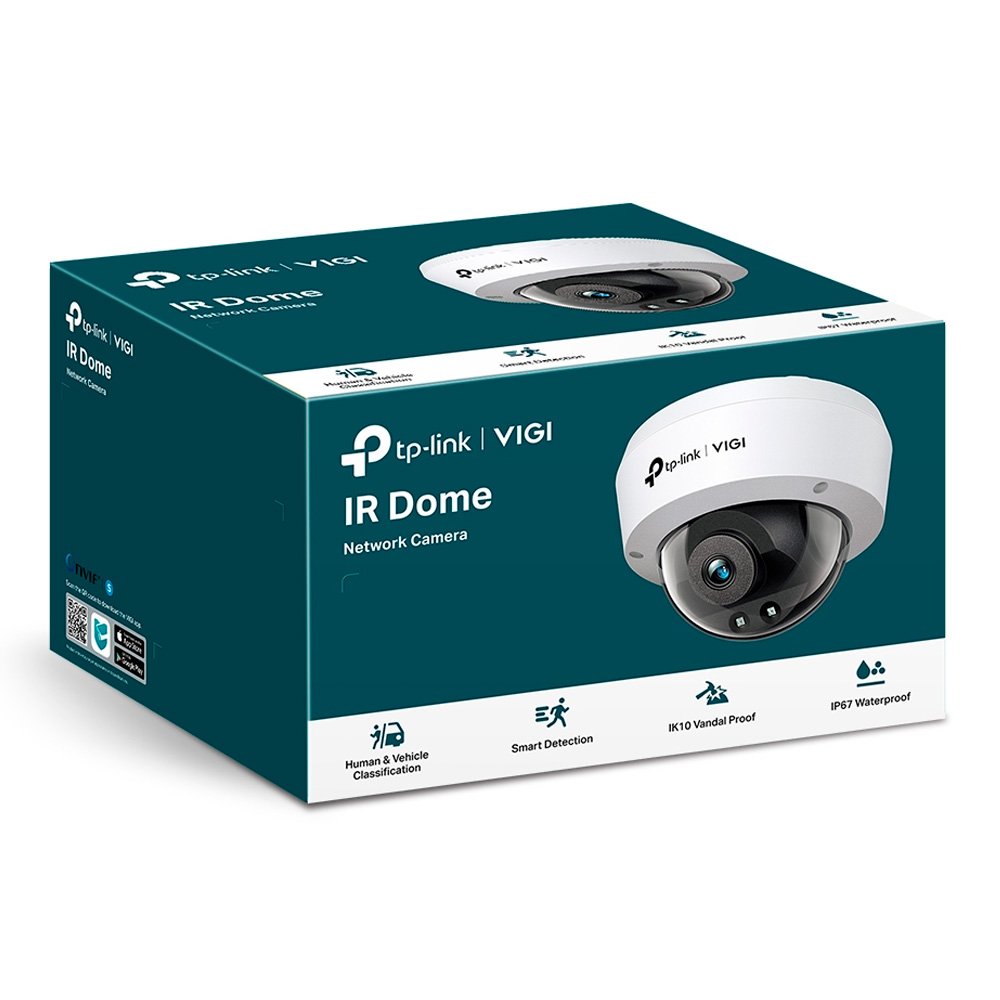 Cámara IP Domo de 2MP. ESPECIFICACIONES: Codecs H.265+/H.265/H.264+/H.264, CMOS de Escaneo Progresivo, Color/0.1, Lux@2.0, 0 Lux con IR, 25fps/30fps (1920×1080, 1280×960, 1280×720), PoE/12V DC, Lente Fijo 2.8 mm, IK10. FUNCIONES: Detección Inteligente (Clasifica Humanos y Vehículos), Detección de Movimiento, Detección de Intrusión de Área, Detección de Cruce de Línea, Detección de Manipulación de Cámara, Detección de Objeto abandonado, Detección de Remoción de Objetos, Detección de Ingreso de Área, Detección de Salida de Área, Detección de Vehículos, Detección Humana; Visión Nocturna de IR (hasta 30 m), Audio de Dos vías, Ranura para MicroSD, ONVIF, SmartVid (IR Inteligente, DWDR, 3D DNR, BLC), Monitoreo Remoto con App VIGI y VIGI Security Manager