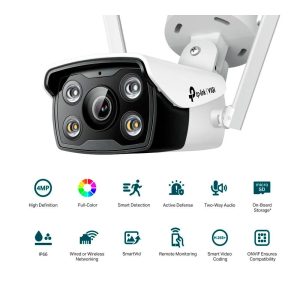 Cámara IP Torreta 4MP a Full Color. ESPECIFICACIONES: Codecs H.265+/H.265/H.264+/H.264, CMOS de Escaneo Progresivo a 1/3, Color/0.04 Lux@F1.6, 0 Lux con IR/Luz Blanca, 25fps/30fps (2560×1440,2304×1296, 2048×1280, 1920×1080), PoE/12V DC, Lente Fijo 2.8 mm, Micrófono, Parlante y ranura de Micro SD. INCLUYE: Visión Nocturna (hasta de 30M) a Full Color/IR, Defensa Activa, Audio de Dos vías, Almacenamiento incluido, Detección Inteligente (Detección de Movimiento con Clasificación Humana, Manipulación de la Cámara, Cruce de Línea, Intrusión de Área), SmartVid (IR Inteligente, WDR, 3D DNR, BLC), IP66, ONVIF. Monitoreo Remoto, App VIGI