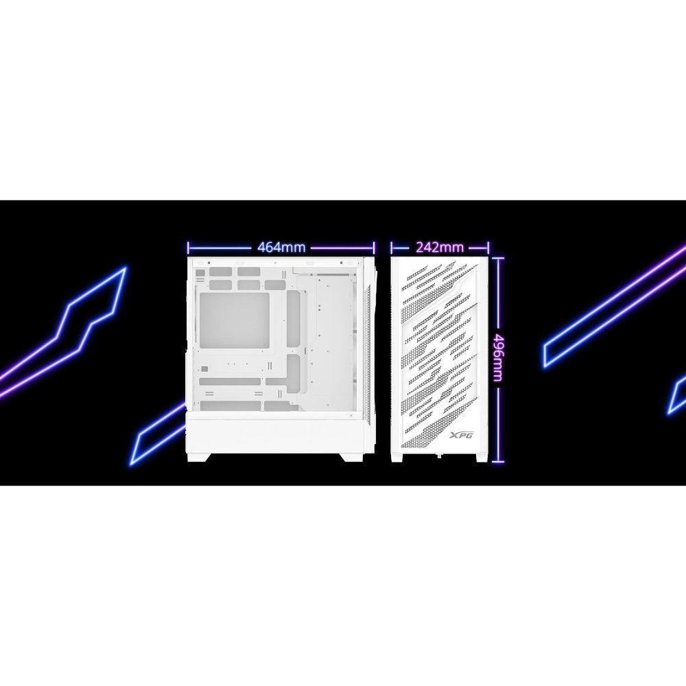 XPG STARKER AIR BTF, Blanco, soporta placas base con diseño de conector inverso, Torre Media ATX, 2.5» y 3.5» pulgadas x2, I/O: USB-C x1, USB-A x2, Audio HD x1, control LED x1, Reinicio x1, Poder x1, Ventilador ARGB: 4 x Ventiladores de 120mm (Frontal x3, Trasero x1), Ventilador: (Trasero x1), 2 Años de Garantía